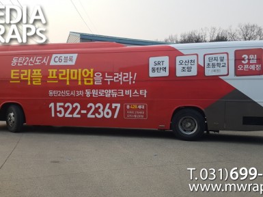 버스 동탄2신도시 동원로얄듀크비스타 [작업차량] BH120F 대형버스[차량색상] 화이트[랩핑타입] 풀랩핑..
