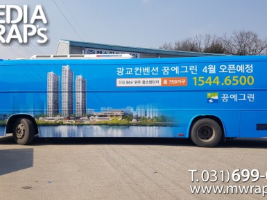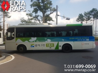 버스 김포풍무 꿈에그린유로메트로 [작업차량] 35인승 [차량색상] 화이트[랩핑타입] 부분랩핑..