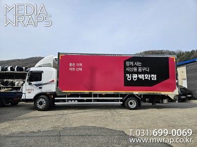 탑차·트럭 킹콩백화점 [작업차량] 5톤원바디윙탑차[차량색상] 흰색[랩핑타입] 탑3면 전체랩핑 ..