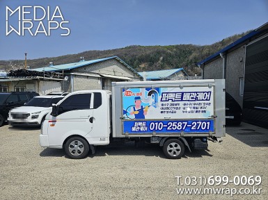 탑차·트럭 엠엠티케이 [작업차량] 1톤탑차[차량색상] 흰색[랩핑타입] 탑2면 전체랩핑+캘빈&후면 부분랩핑 ..