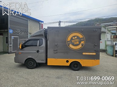 탑차·트럭 달리는카페 [작업차량] 1톤푸드트럭[차량색상] 화이트[랩핑타입] 전체 2도 도색+부분랩핑 ..