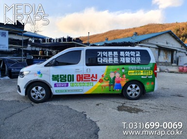 승합·SUV 복덩이데이케어센터 [작업차량] 그랜드스타렉스[차량색상] 화이트[랩핑타입] 부분랩핑..
