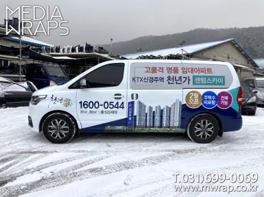 승합·SUV 한화포레미아상업시설스퀘어 [작업차량] 그랜드스타렉스[차량색상] 그레이[랩핑타입] 전체랩핑 (창문 : 타공 필름)..