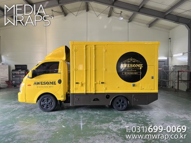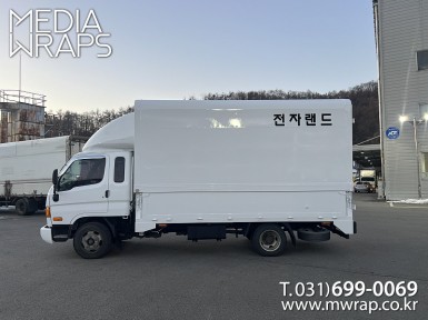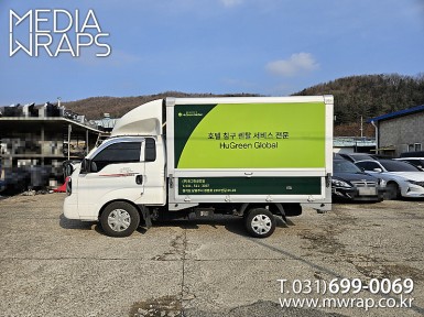 탑차·트럭 휴그린글로벌 [작업차량] 1톤탑차[차량색상] 화이트[랩핑타입] 탑3면 전체랩핑 ..