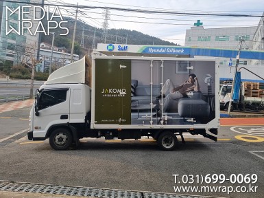 탑차·트럭 자코모가구 [작업차량] 2.5톤탑차[차량색상] 화이트[랩핑타입] 탑3면 전체랩핑 ..