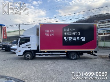 탑차·트럭 킹콩백화점 [작업차량] 3.5톤탑차[차량색상] 화이트[랩핑타입] 탑3면 전체랩핑 ..