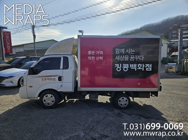 탑차·트럭 킹콩백화점 [작업차량] 1톤탑차[차량색상] 화이트[랩핑타입] 탑3면 전체랩핑 ..
