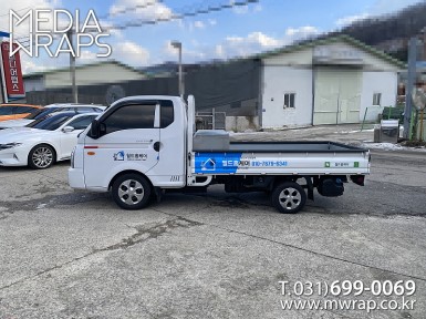 탑차·트럭 누수원케어 [작업차량] 1톤저상탑차[차량색상] 화이트[랩핑타입] 탑3면랩핑 ..