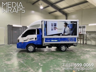 탑차·트럭 스마트터치 [작업차량] 1톤윙바디탑차[차량색상] 화이트[랩핑타입] 탑3면전체랩핑 & 캘빈부분랩핑 ..