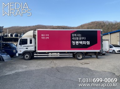 탑차·트럭 킹콩백화점 [작업차량] 5톤탑차[차량색상] 화이트[랩핑타입] 탑3면 전체랩핑 ..