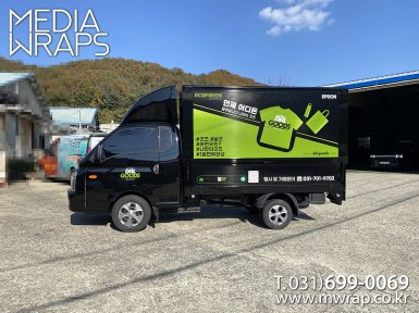 탑차·트럭 에코프린 [작업차량] 1톤윙바디탑차[차량색상] 화이트[랩핑타입] 1도전체도색&탑4면 랩핑&내부랩핑 ..
