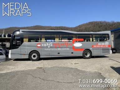버스 대청도엘림여행사 [작업차량] 유니버스럭셔리[차량색상] 진그레이[랩핑타입] 부분랩핑 ..