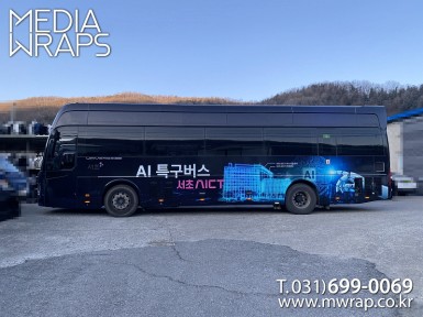 버스 제로쿨투어(서초구AICT) [작업차량] 유니버스프라임[차량색상] 블랙[랩핑타입] 전체랩핑 ..