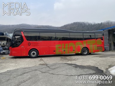 버스 와인코리아 [작업차량] 유니버스노블[차량색상] 레드[랩핑타입] 전체랩핑 ..