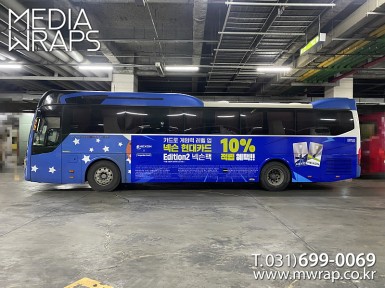 버스 넥슨코리아(넥슨현대카드에디션) [작업차량] 유니버스럭셔리[차량색상] 블루[랩핑타입] 부분랩핑 ..