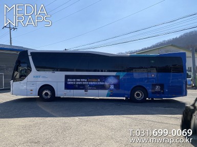 버스 한국거래소 [작업차량] 45인승버스[차량색상] 화이트&블루[랩핑타입] 부분랩핑 ..