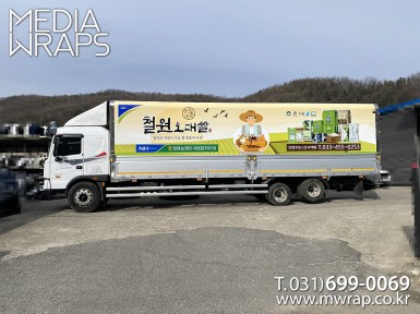 탑차·트럭 철원군홍보차 [작업차량] 5톤탑차[차량색상] 화이트[랩핑타입] 탑3면 전체랩핑 ..